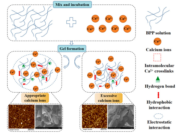 團(tuán)隊(duì)開展研究發(fā)現(xiàn),適當(dāng)濃度的Ca2+促進(jìn)藍(lán)莓果渣多糖形成“蛋盒”模型的凝膠網(wǎng)絡(luò)結(jié)構(gòu),相關(guān)成果以“Gelling properties and formation mechanism of blueberry pomace polysaccharide gels induced by calciumions”為題,發(fā)表在《Food Chemistry》上(DOI:10.1016/j.foodchem.2025.142918)。王儲(chǔ)炎為通訊作者,合肥大學(xué)生物食品與環(huán)境學(xué)院為第一完成單位。