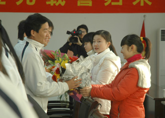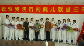 基礎教學部副主任許大慶首先就合肥學院擊劍隊組隊、訓練以及此次赴珠海參加第十一屆全國大學生擊劍錦標賽的情況作了介紹。接著,學生代表向運動員、教練員敬獻鮮花,張雪平副市長等領導還與擊劍健兒們進行合影留念。隨后,運動員、教練員代表分別發言;院長趙良慶發表了重要講話,他充分肯定了這是我院學生素質教育的一項重要成果。市體育局局長汪杰在講話中說,合肥學院擊劍隊白手起家,在這么短時間內,能在全國大學生擊劍錦標賽這樣的重大賽事中取得如此優異的成績是很罕見的,作為一位體育工作者打心眼里感到高興。