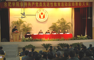 大會由院黨委副書記、院保持共產黨員先進性教育活動領導小組副組長丁元生同志主持。首先,院黨委副書記、院紀委書記劉立成同志宣讀院黨委對在這次保持共產黨員先進性教育活動中表現突出的6個優秀黨總支和17個優秀黨支部進行表彰決定。接著,先進黨總支代表機械工程系黨總支書記李軍和先進黨支部代表教育系學生黨支部書記劉沛平在大會上分別發言。