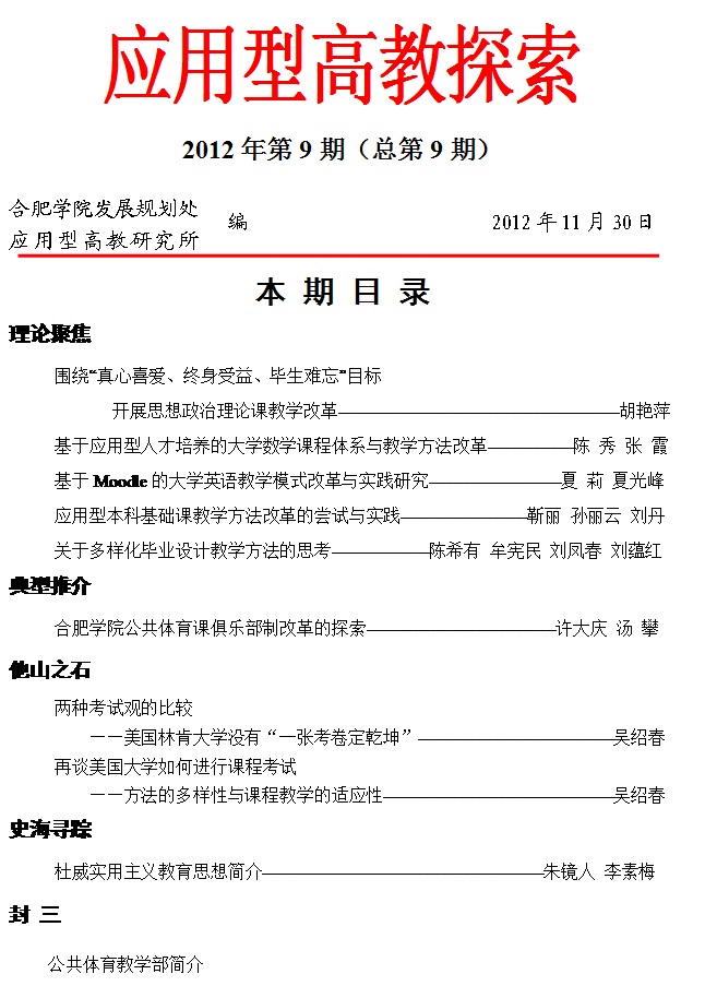 《應用型高教探索》第 9 期以“公共課教學改革和課程考核方式改革”為主題組稿,目錄如下,具體內容請查閱發展規劃處網站,并將您的寶貴意見或建議反饋至我處。
