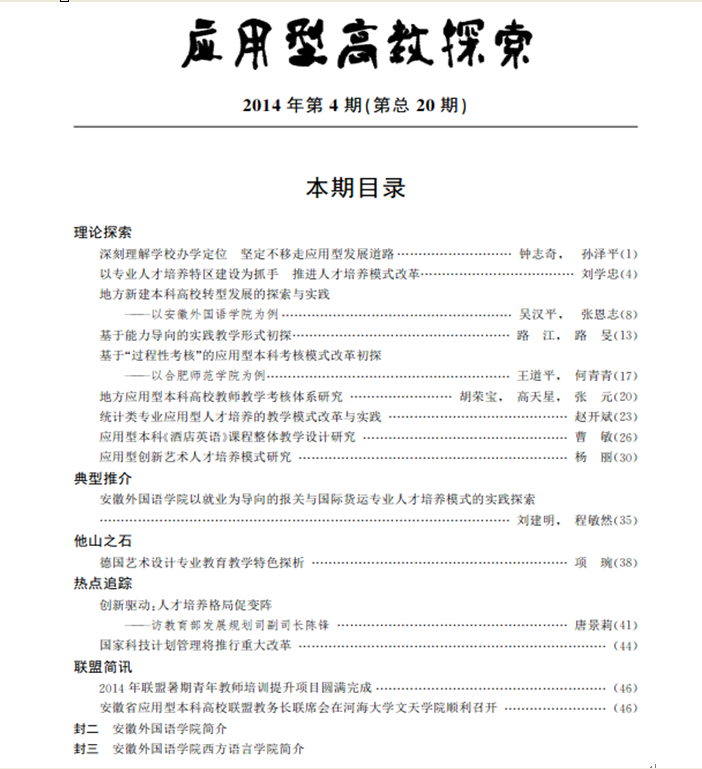 《應用型高教探索》2014年第 4 期(總第20期)已編發,具體內容請查閱發展規劃處網站http://www.erleijd.com/s/85/t/330/p/6/list.htm