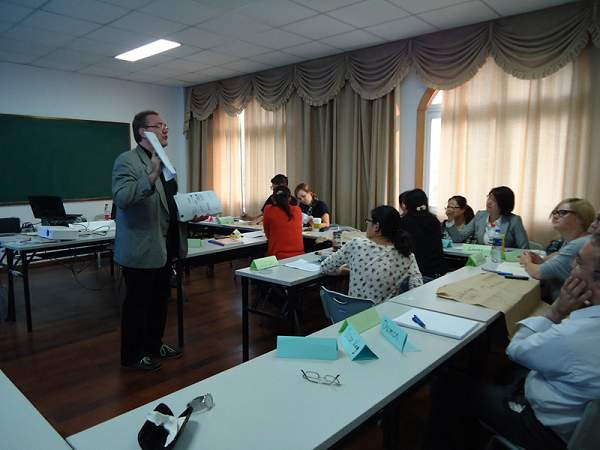 9日下午,格里查先生來到國際教育學院,為在中德合作物流管理專業(LOGinCHINA)和合肥德國應用科學學院(DHH)任課的中、德籍教師進行了教學法的培訓。這也是繼去年11月和今年6月以來,格里查先生第三次來到國際教育學院,對德語教師進行教學法培訓。首先,格里查先生讓教師們談了談教學中遇到的主要問題,然后由教師們分組進行討論,提出各自認為理想的德福教學條件并進行展示。隨后,格里查先生介紹了介紹德福考試內容構成及其特點,指出要根據考試內容的要求完善教學方案,并同大家探討了具體的改善措施。