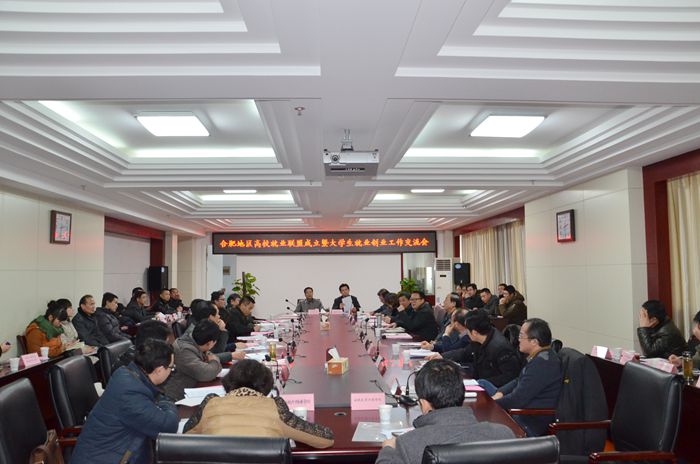為進一步加強合肥地區高校就業創業工作交流與合作,實現資源共享、優勢互補,2015年1月29日下午14點合肥地區高校就業聯盟成立暨大學生就業創業工作交流研討會在合肥學院隆重舉行。省教育廳學生處處長左其琨、省人社廳就業促進處處長劉曉燕、省大中專畢業生就業指導中心主任鮑勇、副主任閆明圣以及合肥市人才服務中心、合肥經開區人才中心、合肥高新區人才中心、合肥東方英才等應邀出席了本次會議;來自合肥地區48所高校代表、合肥市重點企業代表等80余人參加了會議。會議由合肥學院黨委副書記丁明主持。