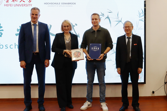 王其東代表學校對卡塔琳娜·普特市長一行表示熱烈的歡迎,對徽文化秋令營的成功舉辦表示祝賀。他表示,此次交流中德學生建立起深厚情誼,為日后攜手書寫兩校友誼新篇章打下堅實基礎(chǔ),為雙方未來教育、經(jīng)濟、文化發(fā)展注入了生機與活力。奧斯納布呂克應用科學大學校長亞歷山大·施梅曼先生在致辭中感嘆中國發(fā)展速度之快,同時也很高興看到合肥大學的高速發(fā)展變化,希望通過更多形式的交流活動來加深兩校友誼,深化合作與發(fā)展。德國奧斯納布呂克應用科學大學的學生代表伊爾薩比·拉德馬赫分享了在合肥大學交流期間的體驗與感悟,并表示會銘記這段美好回憶。