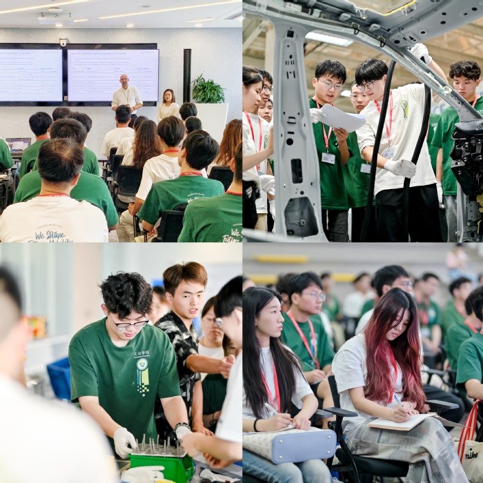 今年暑期,80余名來自雙元制大眾班(數據科學與大數據技術、智能制造工程和無機非金屬材料工程專業)的大二學生,深入企業現場開展了為期2周的認知實習活動。活動得到了大眾集團的大力支持,近80名企業工程師參與其中,指導學生完成了汽車制造工藝培訓、車間參觀、報廢汽車拆解培訓與實踐、數字化轉型與A+工廠、電池系統測試實踐和精益生產培訓等多個主題的理論與實訓課程。