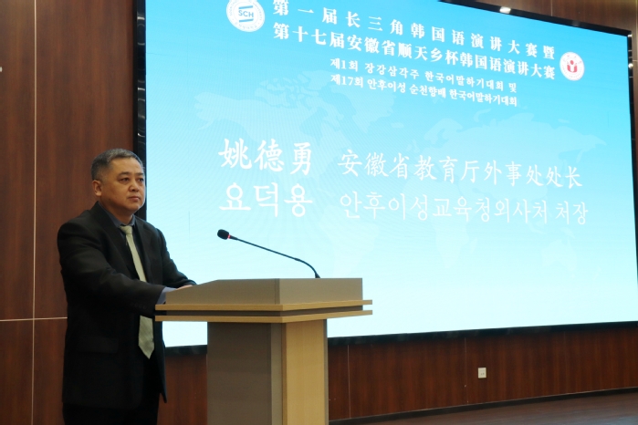 姚德勇對大賽的成功舉辦表示祝賀,向順天鄉大學的嘉賓表示歡迎,同時強調安徽在教育領域的雄厚實力以及與韓國在經濟文化交流方面的成果。他指出,此次大賽升級為長三角賽事,規模擴大、影響力提升,將推動長三角地區韓國語教學與人才培養,為中韓友好交往奠定堅實基礎。