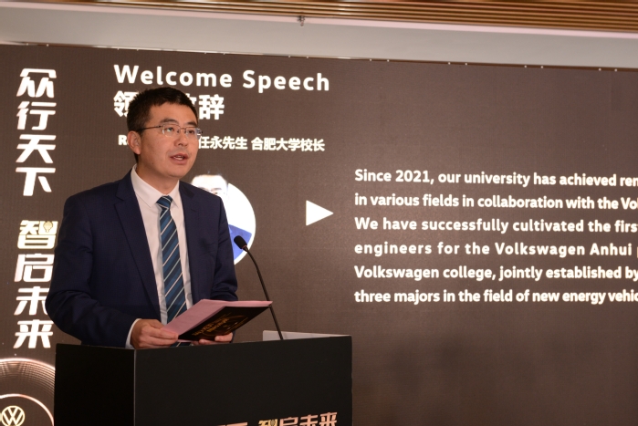 任永表示,合肥大學作為最早探索雙元制高等教育改革的高校之一,秉持開放創新、合作共贏理念,優化學科專業布局,深化產教城融合發展,探索雙元制高等教育“合肥模式”,培養“家門口的工程師”。自2021年起,學校與大眾集團合作建設大眾學院,培養大眾安徽先導中心首批種子工程師,培訓了一批“雙能型”教師團隊,助力安徽“首位產業”發展。新能源汽車之旅體驗中心將為大眾學院的學生和大眾集團的員工提供全新的學習和體驗平臺,幫助他們直觀感受汽車文化魅力,了解新能源汽車技術發展趨勢,培養創新思維和實踐能力。