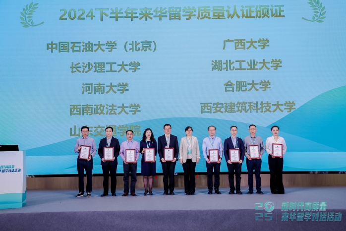 近日,由中國教育國際交流協會主辦的“新時代高質量來華留學對話活動”在浙江舉行。會上公布了20所2024年度下半年通過來華留學生高等教育質量認證和再認證的高校名單,我校通過再認證,認證有效期為4年。