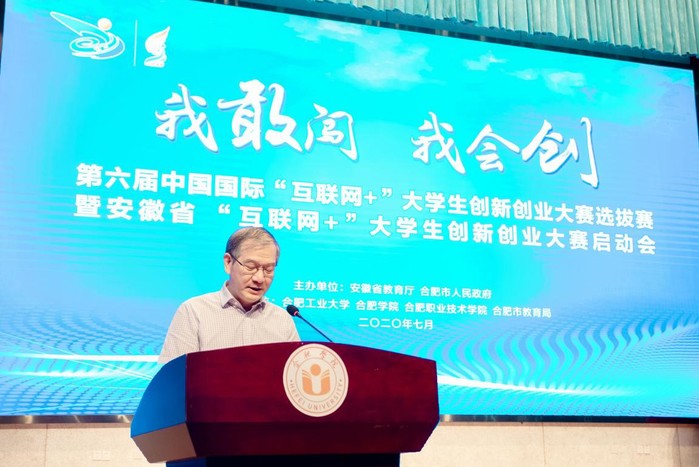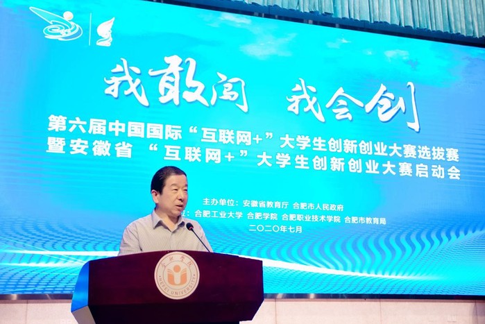 本屆大賽以“我敢闖,我會創”為主題,由安徽省教育廳與合肥市人民政府聯合主辦,合肥工業大學、合肥學院、合肥職業技術學院、合肥市教育局共同承辦。省教育廳副廳長儲常連、合肥市人民政府副秘書長吳昌文、合肥學院黨委書記王其東、合肥工業大學黨委副書記陳剛、合肥職業技術學院黨委書記羅兆好、合肥市教育局二級調研員唐文水出席啟動會,會議由我校校長吳春梅主持。