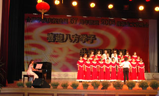 9月27日晚,我院慶祝建國57周年暨迎2006級新生文藝晚會在院南區禮堂舉行。院團委副書記宣文、各系團總支書記、新生輔導員以及我院南北區1000余名學生觀看了節目。