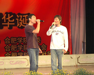晚會在舞蹈《如火的青春》中拉開帷幕,該舞蹈由院大學生藝術團舞蹈隊表演,火紅的舞衣、優美的舞姿博得掌聲陣陣。此次晚會節目豐富多彩:街舞、話劇、健美操、雙簧以及各種風格的舞蹈、合唱等令觀眾耳目一新。其中,2005年安徽省澤平杯校園歌手大賽二等獎獲得者吳墨君演唱的《翻身農奴把歌唱》,突出了建設新中國的主題,表演者獨特的女高音吸引了全場觀眾,場下掌聲如雷。中國語言文學系學生表演的雙簧《新生報到》展現了新時代大學生的思想風貌,表演者的滑稽幽默使得觀眾笑聲不斷。院大學生藝術團指導老師許剛、陳曉彥的合唱《我和我的祖國》,歌聲昂揚,蘊涵了催人奮進的力量,將整場晚會推向高潮。最后,晚會在教育系的群舞《阿里郎》中落下帷幕。