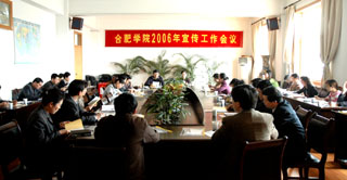 會(huì)議由副院長陳嘯主持。會(huì)議總結(jié)了我院2005年宣傳工作,并分析了目前宣傳工作中存在的不足,對2006年我院的宣傳工作作了部署。2005年學(xué)院宣傳工作指導(dǎo)思想明確,工作作風(fēng)扎實(shí),取得較好成績,在院內(nèi)已初步構(gòu)筑起以《合肥學(xué)院報(bào)》、學(xué)院網(wǎng)頁新聞(首頁新聞、院內(nèi)新聞)、院新聞中心(廣播臺(tái)、記者團(tuán))為平臺(tái)的三位一體的立體化宣傳格局,為營造良好的校園人文環(huán)境和積極健康的校園文化作出了積極貢獻(xiàn)。在院外,通過新華社、《安徽日報(bào)》、安徽電視臺(tái)等眾多媒體和新華網(wǎng)、中安網(wǎng)、安徽教育網(wǎng)等系列新聞網(wǎng)絡(luò)平臺(tái)以及央視《金蘋果》欄目等眾多宣傳渠道,發(fā)表宣傳稿件,制作了《正在崛起的合肥學(xué)院》電視宣傳片、編輯了3000冊外事宣傳畫冊和1萬冊學(xué)院宣傳畫冊,大大提升了學(xué)院的知名度和美譽(yù)度。在取得諸多成績的同時(shí),我院宣傳工作中還存在著少數(shù)單位對宣傳工作重視不夠、業(yè)務(wù)不精、稿件質(zhì)量不高、時(shí)效性不強(qiáng)等缺陷,需要進(jìn)一步加以改進(jìn)和完善。2006年宣傳部將進(jìn)一步明確指導(dǎo)思想,以“三個(gè)代表”、科學(xué)發(fā)展觀、“八榮八恥”等重要思想統(tǒng)領(lǐng)整個(gè)宣傳工作,緊緊圍繞學(xué)院改革發(fā)展大局,緊密結(jié)合學(xué)院黨委的中心工作,如學(xué)風(fēng)建設(shè)、師德建設(shè)、效能建設(shè)等主題,選好角度,加大宣傳力度,為營造和諧校園,樹立學(xué)院美好形象貢獻(xiàn)力量。