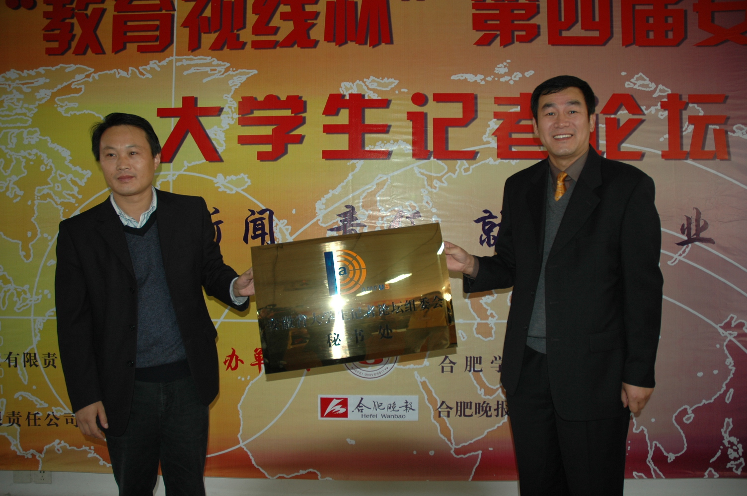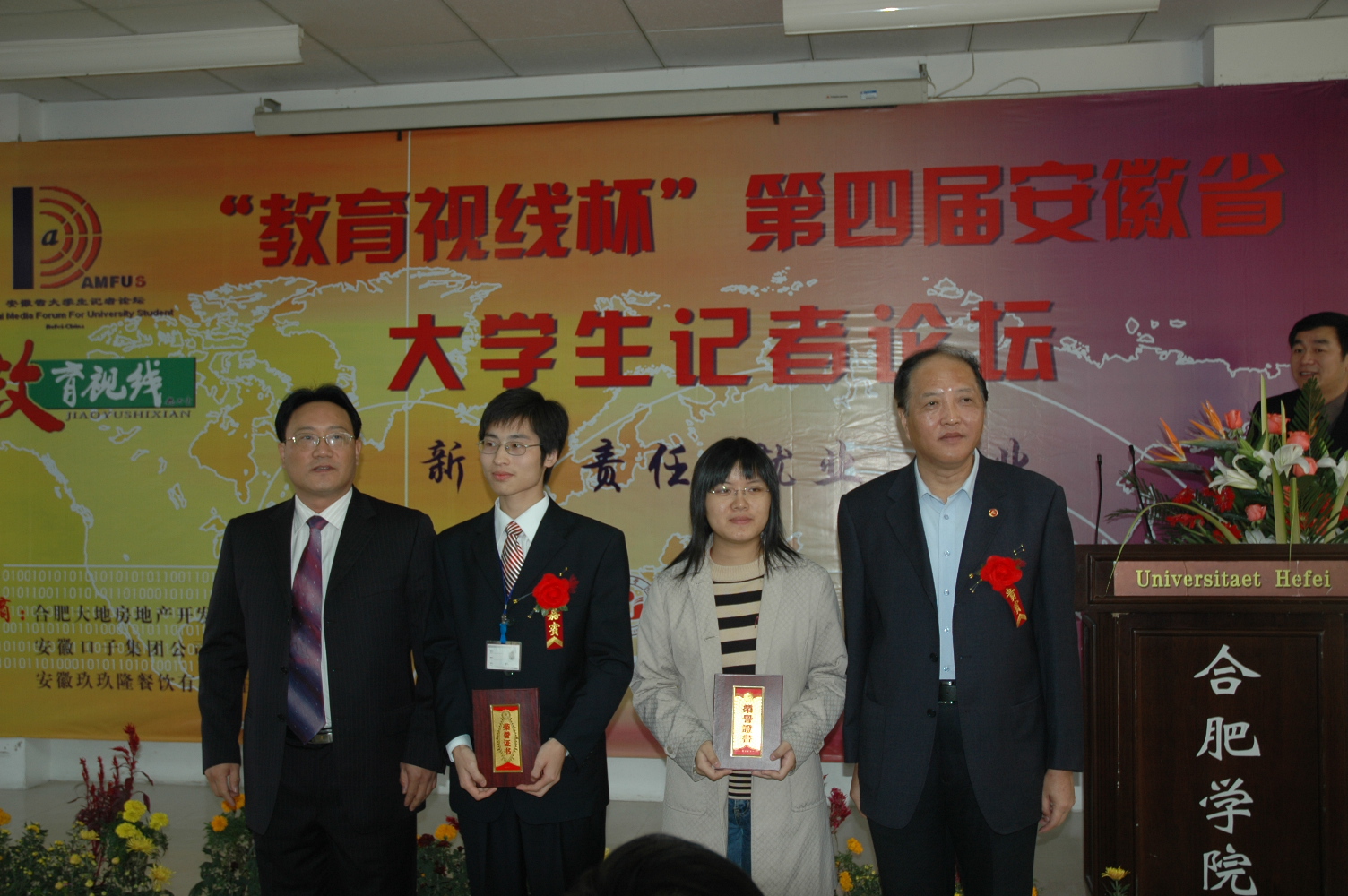 本次“論壇”全程由合肥學(xué)院新聞中心的學(xué)生記者們自主策劃、組織、實施的。自2004 年來,論壇分別以“探討新形勢下高校‘第二課堂’人才培養(yǎng)模式”、“愛與未來”及“文化與和諧”為主題,至今已成功舉辦3 屆。由于活動日臻成熟與完善,論壇已經(jīng)形成一個頗具影響力的校園文化品牌。在2007 年全國高校校園文化建設(shè)優(yōu)秀成果評選活動中,安徽省大學(xué)生記者論壇以其豐厚先進的文化內(nèi)涵,務(wù)實創(chuàng)新的形式,獨特鮮明的風格,榮獲三等獎,充分展示了我省大學(xué)生的社會主人翁精神、自主創(chuàng)造性和思想層次性。