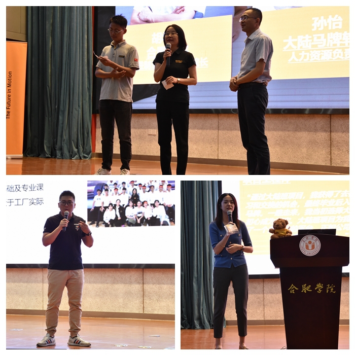 首先,大陸馬牌輪胎(中國)有限公司招聘與雇主品牌經(jīng)理李媛媛介紹了大陸集團及大陸馬牌輪胎公司的組織架構(gòu)、前沿技術(shù)、品牌定位,詳細講述了大陸馬牌輪胎合肥工廠的概況、發(fā)展歷程和市場規(guī)模。大陸班負責人張光從班級的基本概況班級辦學特色大陸班的發(fā)展機遇與挑戰(zhàn)、課程設(shè)置、學費標準等方面為現(xiàn)場同學詳細介紹了項目情況在答疑互動環(huán)節(jié),先進制造工程學院院長胡學友大陸馬牌輪胎(合肥)有限公司人力資源總監(jiān)孫怡講解大陸班選拔流程,優(yōu)秀畢業(yè)生代表暢談在大陸班的成長故事,鼓勵新生積極參與項目報名。