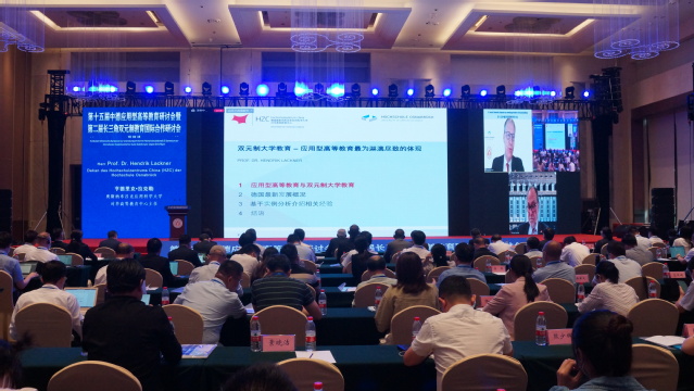 Prof. Dr. Hendrik Lackner, Dekan des Hochschulzentrums China (HZC) der Hochschule Osnabrück erl?uterte das duale Ausbildungsmodell unter den Gesichtspunkten der anwendungsorientierten Hochschulbildung und der dualen Hochschulbildung, der jüngsten Entwicklung in Deutschland und der einschl?gigen Erfahrungen anhand von Fallstudien. Er sagte, dass die Entwicklung der Unternehmen eine gro?e Anzahl qualifizierter anwendungsorientierter Talente ben?tige und die Ausbildung von Talenten an den Hochschulen eng mit den Bedürfnissen der Unternehmen verbunden werden solle, und das duale System neue M?glichkeiten für die Entwicklung der Hochschulen biete.