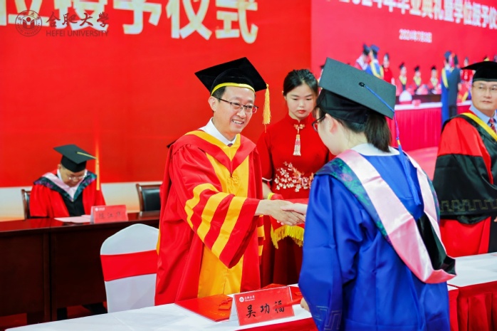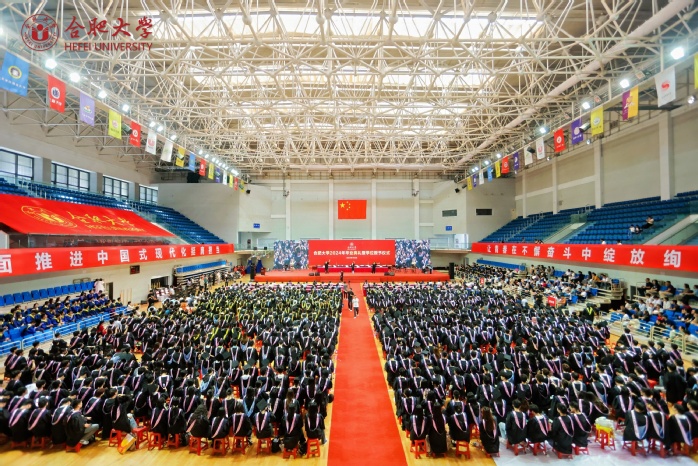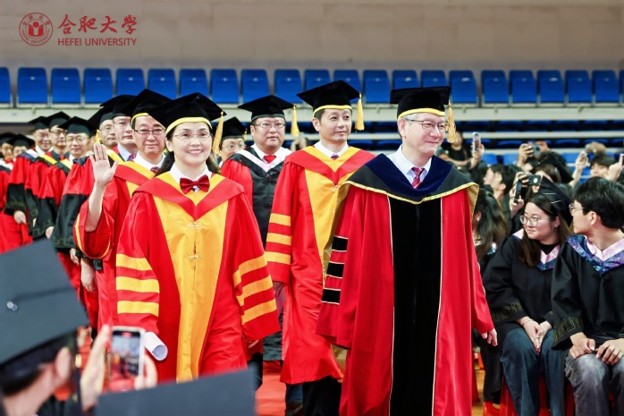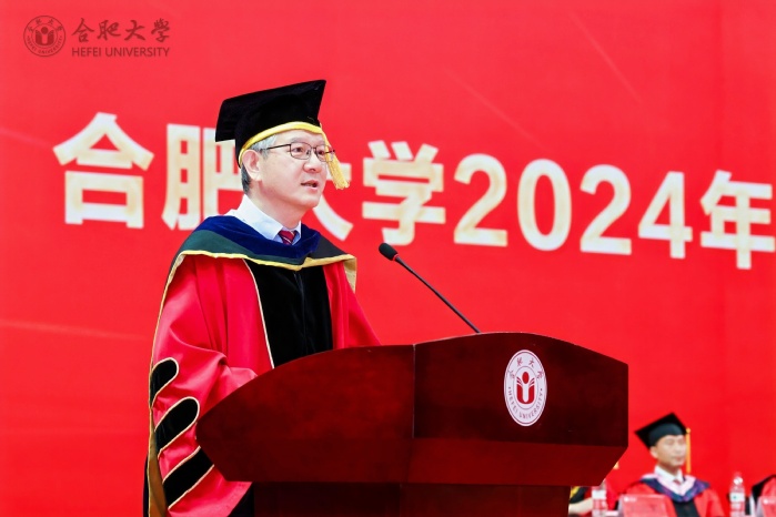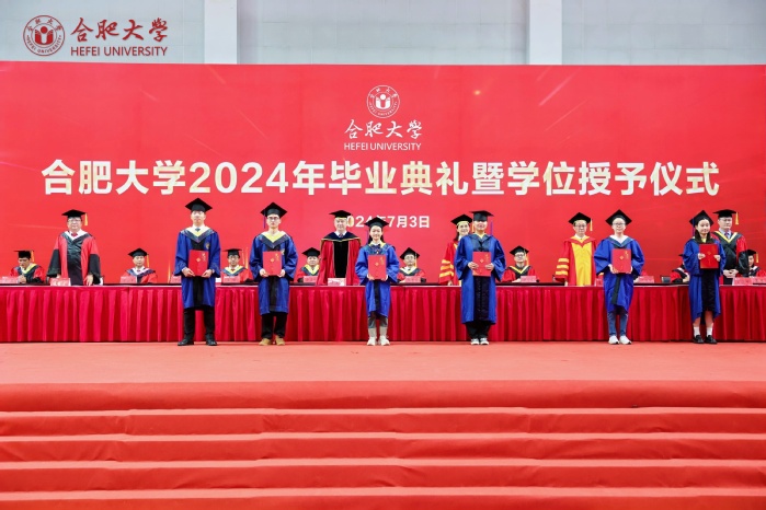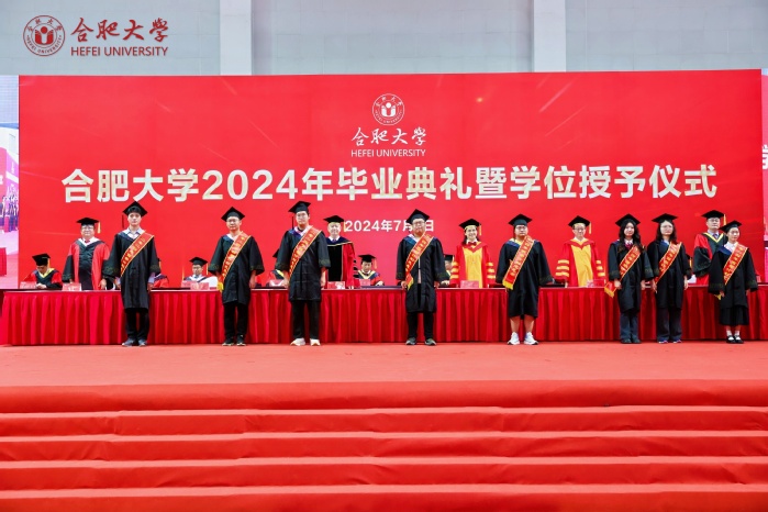 7月3日,合肥大學2024年畢業典禮暨學位授予儀式在體育館舉行。校領導出席,校學位評定委員會全體成員、2024屆畢業生代表、職能部門負責人、各二級學院學位評定委員會成員、教師代表參加。