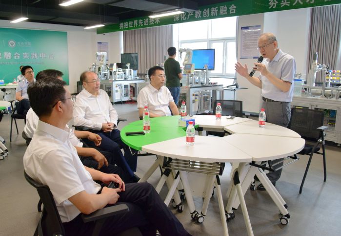 在大眾學(xué)院,張洪彬一行實(shí)地參觀調(diào)研了智能制造系統(tǒng)集成技術(shù)應(yīng)用創(chuàng)新中心、數(shù)字孿生技術(shù)及應(yīng)用工程中心和多模態(tài)工業(yè)設(shè)備狀態(tài)監(jiān)測(cè)實(shí)驗(yàn)室,認(rèn)真聽(tīng)取了大眾學(xué)院建設(shè)發(fā)展情況,充分肯定了大眾學(xué)院在產(chǎn)教融合和專業(yè)、就業(yè)、產(chǎn)業(yè)“三業(yè)一體”應(yīng)用型人才培養(yǎng)方面取得的成果,鼓勵(lì)學(xué)院凝練特色,創(chuàng)新發(fā)展思路,加強(qiáng)校企協(xié)同育人,切實(shí)提升服務(wù)地方經(jīng)濟(jì)社會(huì)發(fā)展的能力和水平。