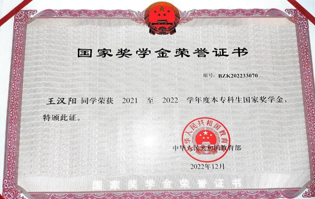 王漢陽在學習上始終保持著高度的熱情與專注,秉持“博學之,審問之,慎思之,明辨之,篤行之”的態度。課堂上,他認真聽講,積極思考老師提出的問題,踴躍參與課堂互動,如同一塊海綿,盡情吸收知識的甘霖。課后,他主動完成作業,并且善于拓展學習,深入研究專業領域的前沿知識。他深知學習如逆水行舟,不進則退,因此不斷挑戰自我,超越自我,連續四年學分績點和綜合測評均在專業中位列第一名。他的努力不僅體現在成績上,還體現在對知識的深刻理解與運用上。在專業課程的學習中,他能夠將理論知識與實際案例相結合,提出獨到的見解,得到了老師和同學們的一致認可。