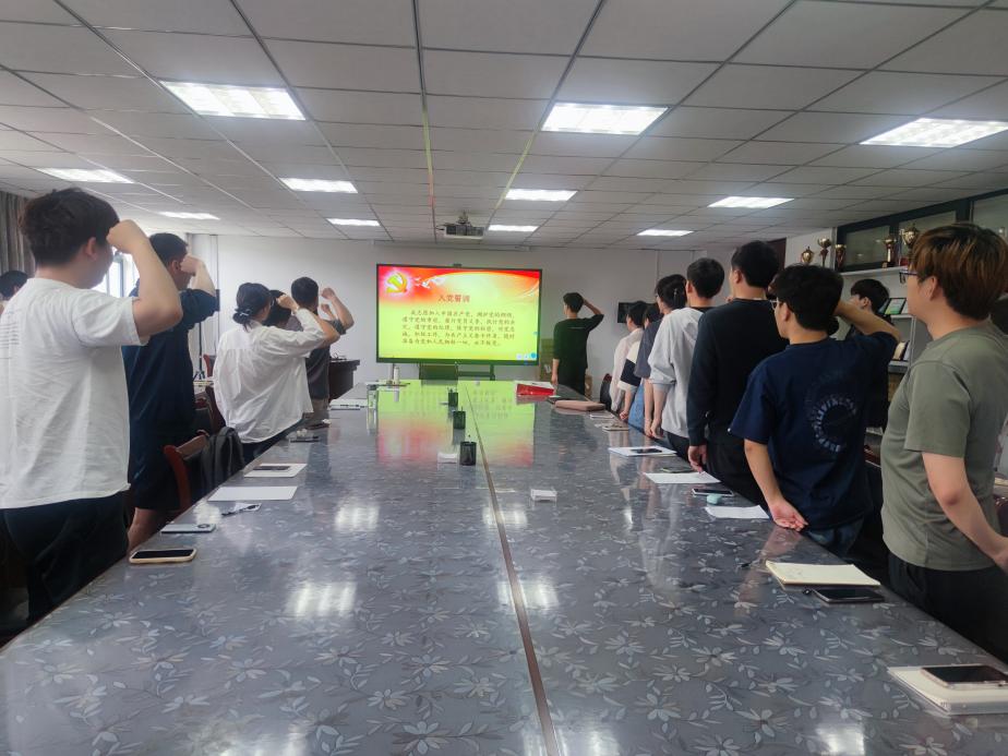 最后,畢業生黨員代表張政帶領大家重溫了入黨誓詞。鏗鏘有力的誓詞回蕩在會議室,每一位黨員都仿佛回到了入黨回味著當時的初心與激情。張政表示,無論未來走到哪里,都將牢記黨員身份,不忘初心,繼續前行。