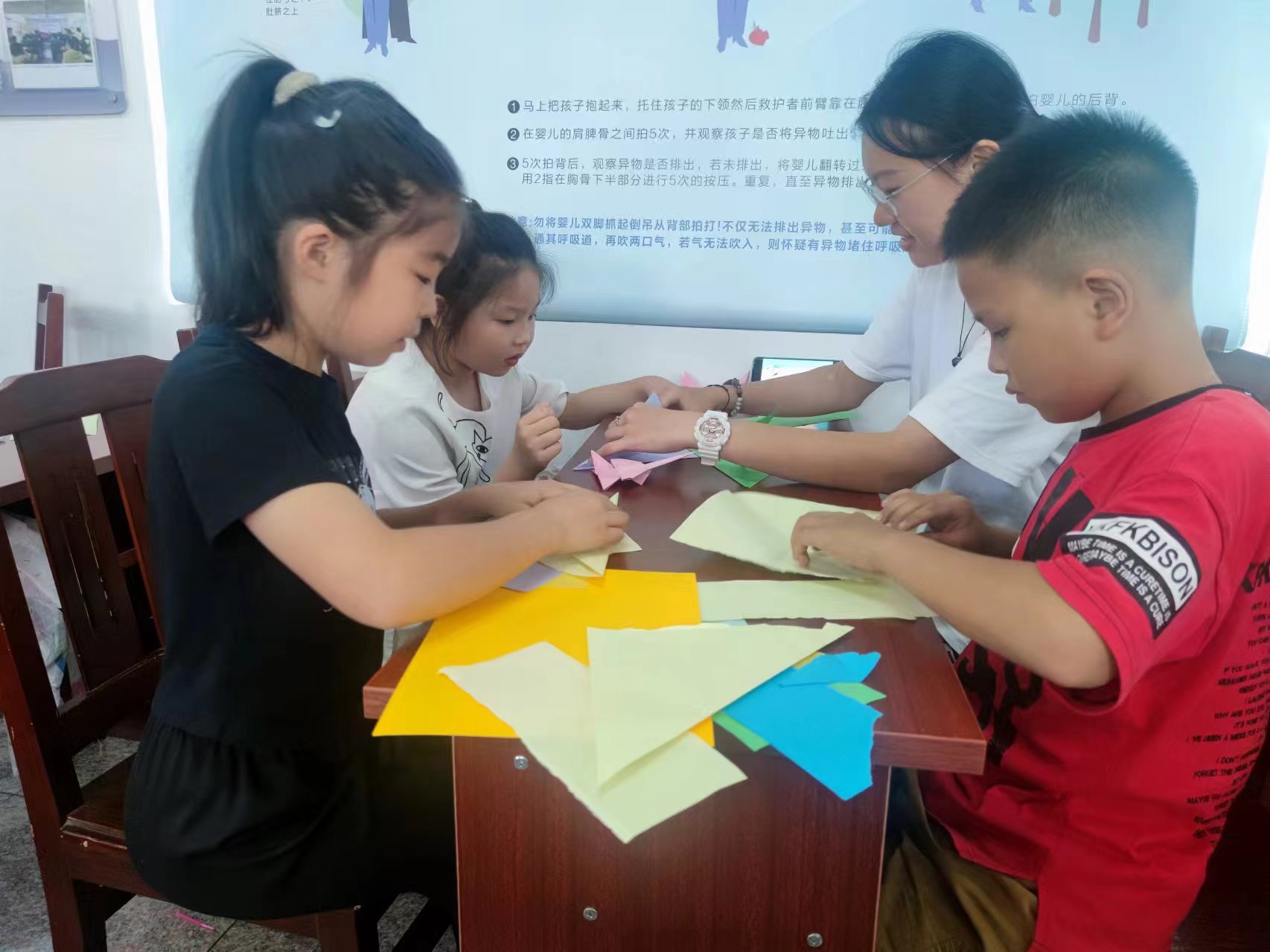 7月18日上午,同學們又去往五龍社區(qū)開展垃圾分類主題的公益課堂。同學們耐心地指導每一個孩子進行折紙,豐富了兒童的課余生活。
