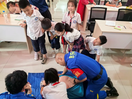 此外,為了提高青少年的急救能力,活動還安排了現場模擬心肺復蘇和人工急救方法的演示。志愿者們詳細講解了心肺復蘇的每一個步驟,包括如何檢查心跳和呼吸、心臟按壓的正確手法等,并進行了實際操作演示。每組參與者在指導下進行了30次按壓和5組的訓練,以確保他們能夠熟練掌握急救技能。通過這種實際演練,青少年們不僅掌握了急救的基本方法,還增強了處理突發事件的自信和能力。