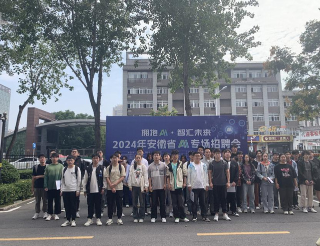 為推動2025屆畢業生就業工作穩步進行,2024年10月12日下午,安徽省人力資源和社會保障廳聯合合肥綜合性國家科學中心人工智能研究院等共同舉辦“擁抱AI·智匯未來——2024年安徽省AI專場招聘會”。合肥大學作為本次招聘會的協辦高校之一,人工智能與大數據學院學生第一黨支部積極響應國家關于促進高校畢業生就業和加強AI人才培養的號召,組織學院相關專業畢業生參會。