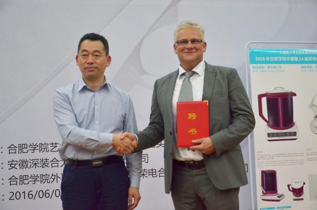 張文兵院長向提斯·克魯格教授頒發(fā)了合肥學(xué)院客座教授聘任證書。