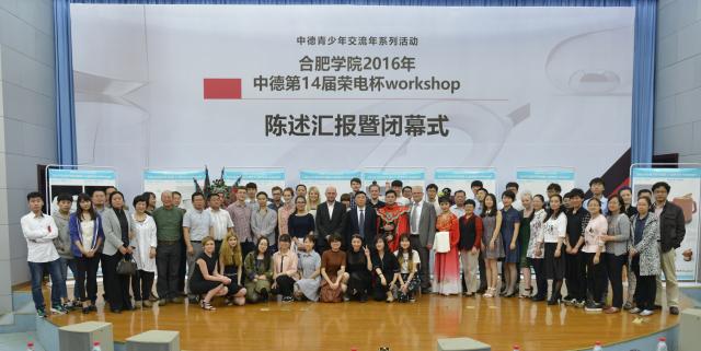 本屆WORKSHOP合作項目逢中德青少年交流年,第二階段的文化交流活動,藝術(shù)設(shè)計系邀請了安徽省京劇院專業(yè)藝術(shù)家表演了文藝節(jié)目,精彩的水袖、京劇靠旗、川劇變臉表演輪番上演,會場內(nèi)掌聲此起彼伏,氣氛熱烈。會后,德國老師和同學(xué)們紛紛和表演藝術(shù)家合影留念,表示領(lǐng)略了博大精深的中國文化,活動很有紀念意義,第十四次WORKSHOP項目雖然結(jié)束了,但WORKSHOP項目需要長期進行,我們已經(jīng)開始期待明年WORKSHOP的到來。