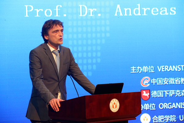 蔡敬民表示,合肥學(xué)院是目前中國對德應(yīng)用型高等教育領(lǐng)域合作規(guī)模最大的高校之一、也是中國高校與德國應(yīng)用科學(xué)大學(xué)成功合作的典范。31年來學(xué)校將德國辦學(xué)經(jīng)驗(yàn)本土化,以創(chuàng)新開放發(fā)展的理念推進(jìn)應(yīng)用型大學(xué)建設(shè),取得顯著成效,為推動中國地方高校轉(zhuǎn)型發(fā)展提供了樣本,在中國高等教育改革中發(fā)揮了示范作用。2015年10月30日,中德兩國總理訪問合肥學(xué)院,充分肯定了學(xué)院三十年來的發(fā)展壯大是中德務(wù)實(shí)合作發(fā)展的成功典范,并決定在學(xué)院設(shè)立“中德教育合作示范基地”和基金。目前,中德教育合作示范基地工作正在緊密推進(jìn),本次研討會正是中德教育合作示范基地的重要平臺之一,更是中德應(yīng)用型高等教育合作的重要橋梁。希望可以借此機(jī)會進(jìn)一步擴(kuò)大中德師生交流、項(xiàng)目交流,打造中德應(yīng)用型本科教育戰(zhàn)略合作聯(lián)盟。