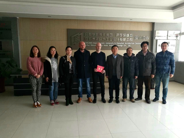 謝主任對貝斯教授的設計成果和教學經驗表示了十分的肯定和贊賞。認為貝斯教授能將自己的研究成果和實際項目實踐相結合,形成產品,推廣市場,為消費群體、企業和社會服務,產生實際的應用價值,是我們應用型高校教師學習和今后發展的榜樣。謝海濤主任表示合肥學院藝術設計終秉承學院“地方性、應用型、國際化”的辦學理念和治學思想,在教學管理、科研工作、產學研合作以及國際化交流諸方面勤于探索、勇于實踐,逐漸走出了富有成效和專業特色的辦學之路。在教師隊伍建設上實行“走出去”和“請進來”的培養模式。中德兩國總理訪問合肥學院后,宣布建立中德合作師范基地和基金,同時合肥學院也在向合肥大學的目標邁進,學院需要像貝斯教授這樣的人才加入,通過向學院匯報后決定聘請貝斯教授為合肥學院客座教授,推動學院的教學發展。