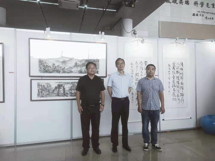 7月2日下午,為慶祝中國共產黨成立100周年,以“百年百幅”為題,由合肥學院、安徽大學共同舉辦的師生書畫攝影作品聯展在安徽大學磬苑校區文典閣開展。安徽大學黨委書記蔡敬民出席活動并致辭,我校黨委委員、宣傳統戰部部長賈峰,工會主席崔國慶參加開幕式并參觀展覽。