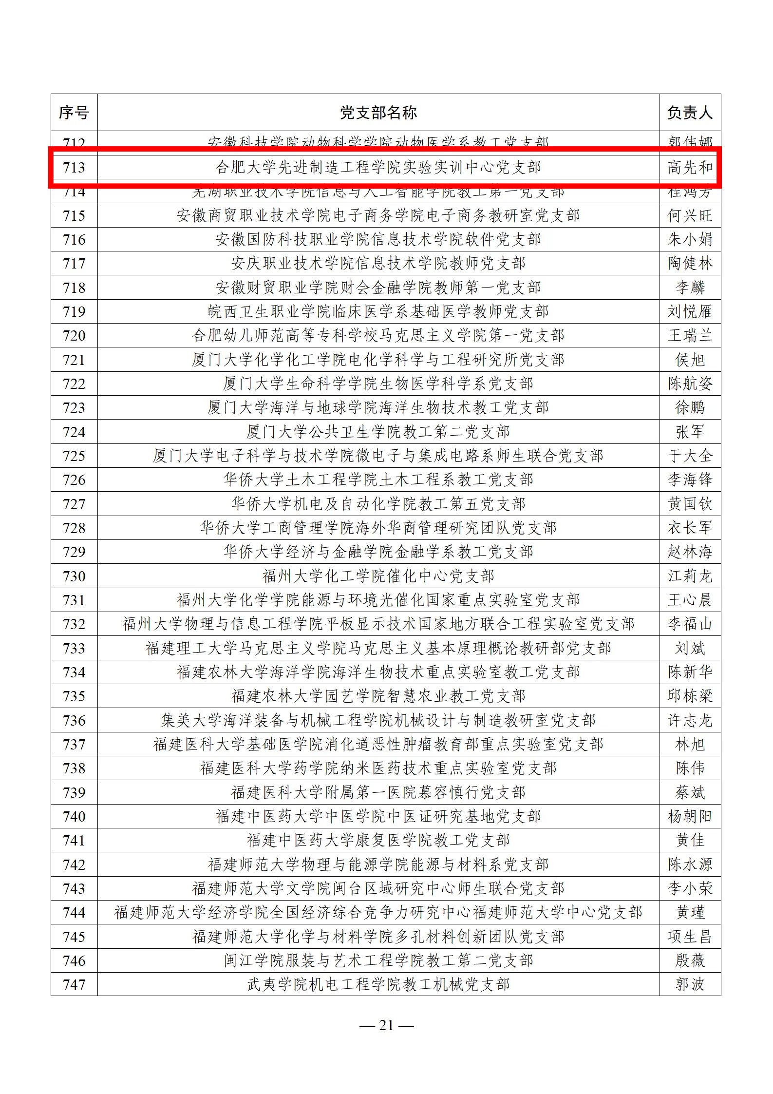 近日,教育部公布的全國高?!半p帶頭人”教師黨支部書記“強國行”專項行動團隊名單中,合肥大學先進制造工程學院實驗實訓中心黨支部獲批此項榮譽 。
