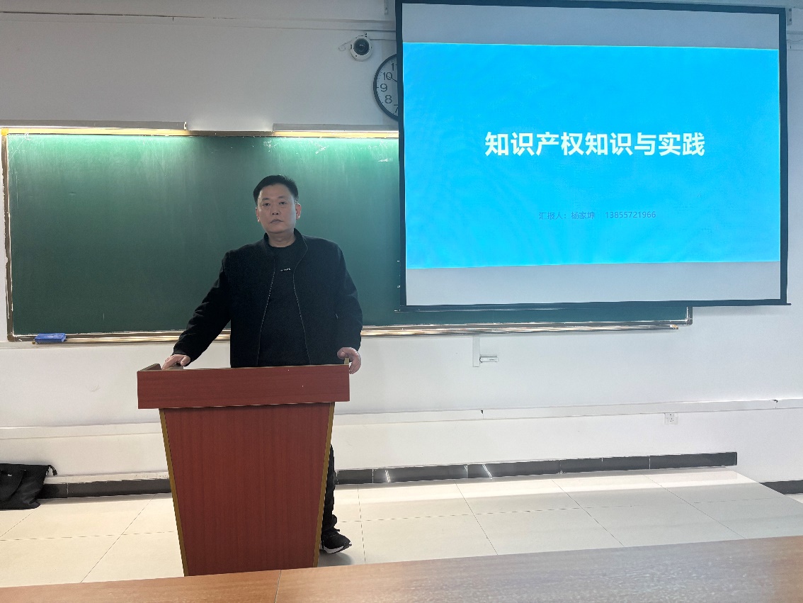 講座伊始,楊家坤深入淺出的介紹了知識產權的定義、四大特性、重要性,并介紹了常用的專利申請流程和檢索工具。他以其豐富的經驗和深刻的見解,結合一系列生動案例,向同學們展示了理論知識與實踐的有效結合;要樹立知識產權的保護意識,倡導誠信文化,尊重知識、保護創新的觀念。特別強調了在經濟全球化背景下,高校培養具有知識產權意識和能力的高素質人才,不僅是學校自身發展的需要,更是服務國家創新驅動發展戰略、支撐經濟社會高質量發展的必然要求。