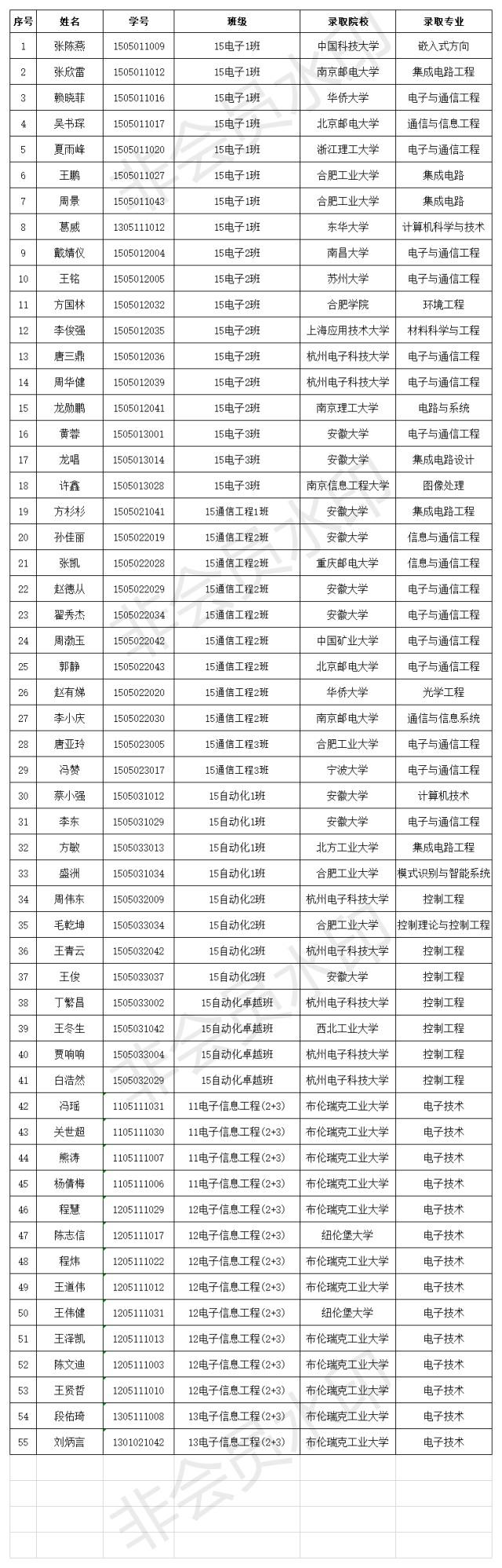 電子系2019屆畢業生考研情況