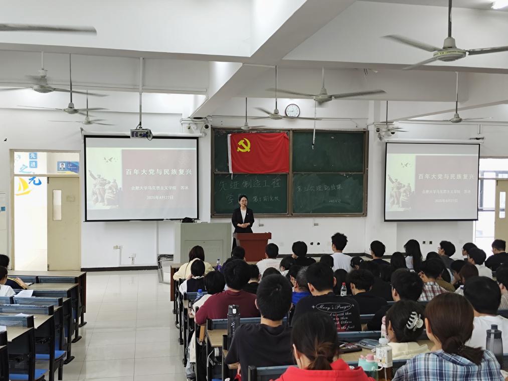 2025年4月27日中午,先進制造工程學院分黨校第十期入黨積極分子培訓班第三次理論授課于38棟3階梯教室舉行,本次黨課由馬克思主義學院副院長、馬克思主義學院直屬黨支部書記蘇冰教授進行授課,培訓班共116名參加了本次授課,黨課主題為“百年大黨與民族復興”。