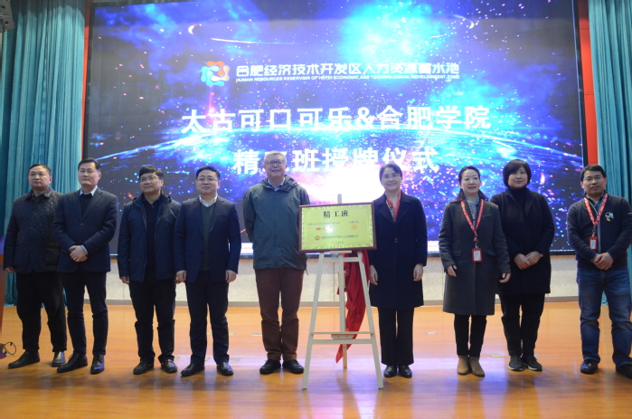 為促進校企深度合作,加強產教融合,3月4日上午,我校和合肥太古可口可樂飲料有限公司合作的“精工班”開班暨授牌儀式在學術報告廳A廳舉行。經開區人事勞動局局長劉干、人力資源中心主任王禮祥,太古可口可樂中國供應鏈總經理張曉東來校參加儀式,副校長陳秀出席活動,校黨員委員、教務處處長王曉峰,生物食品與環境學院院長俞志敏、副院長陳俊,先進制造工程學院副院長秦強,先進制造工程學院和生物食品與環境學院“精工班”師生等參加儀式,儀式由先進制造工程學院黨委書記杜娟主持。