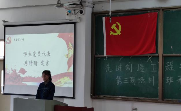 2021年3月25日中午12:40,先進制造工程學院分黨校第三期入黨積極分子培訓班開班典禮于38棟3JT教室順利進行。院黨委書記杜娟、黨委副書記李秀娟、各黨支部書記出席了典禮,170余名黨校學員參加了典禮,典禮由研究生支部書記威力旺老師主持。