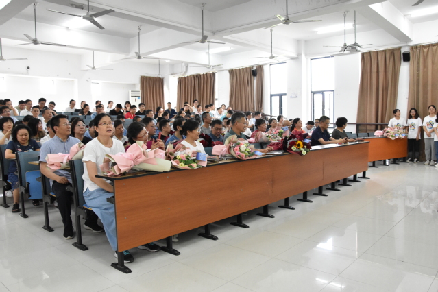 院長呂剛宣讀“從教三十年”表彰教師名單。呂剛、李秀娟、胡學友、高先和等黨委委員分別為26位獲表彰教師頒發了“從教三十年”榮譽獎牌,學生代表為受表彰老師們敬獻鮮花表達了衷心祝福和感謝,感謝老師們對莘莘學子的辛勤栽培和辛苦付出。