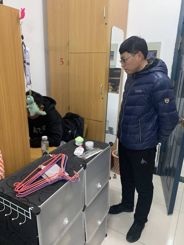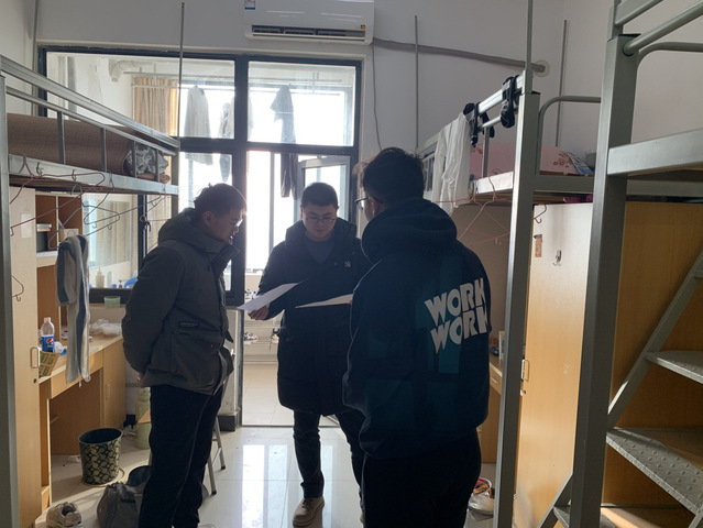 此次檢查工作重點在于針對宿舍衛生情況、是否使用大功率用電器、是否存在私拉亂扯電線等現象進行詳細摸排。此次安全檢查工作中,多數宿舍床鋪干凈,桌椅擺放整齊,并未發現有大功率用電器以及私接電線等違規現象的存在,但仍有小部分宿舍內物品擺放雜亂。巡查老師在檢查過程中對于存在問題的宿舍給予記錄,并通知其及時進行整改,確保學生能夠在寢室中安逸地學習、安全地居住、舒適地生活。