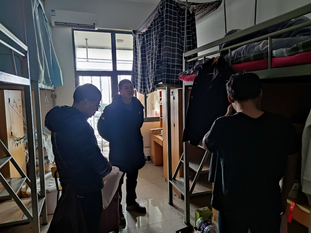 同時,巡查老師重點關注家庭住址靠近疫區的同學,詳細詢問其返鄉以及后續安排。輔導員老師叮囑學生做好疫情防范和財物安全防護工作,并在安全抵達目的地之后及時向老師反應。
