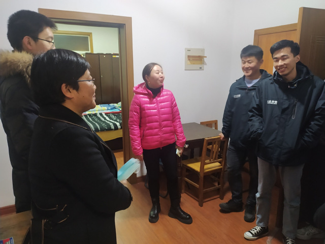 2022年1月20日晚7:30,先進(jìn)制造工程學(xué)院黨委書(shū)記杜娟、副書(shū)記李秀娟、學(xué)工辦負(fù)責(zé)人梅志強(qiáng)到一期留學(xué)生公寓走訪看望了我院留宿學(xué)生。目前,我院有9名同學(xué)因在大眾公司實(shí)習(xí)暫時(shí)留宿學(xué)校。他們白天在公司實(shí)習(xí),晚上回校居住。