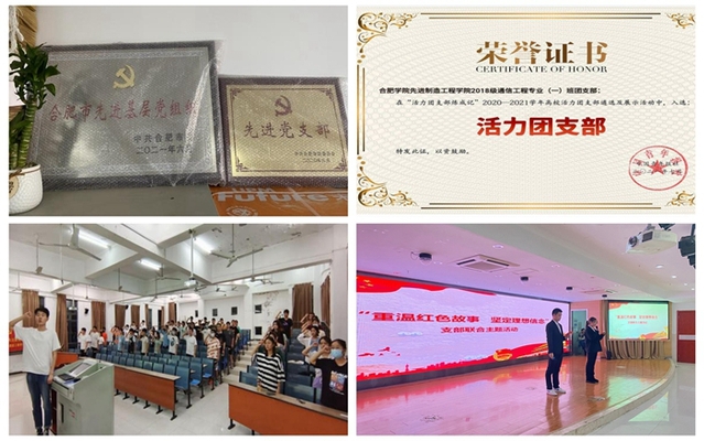 支部構建“三原則、一目標”的黨建工作格局,充分發揮黨員模范帶頭作用,提升人才培養質量,在組織建設、宣傳引領、服務社會和科技創新等工作中成果豐碩。先后獲校“先進黨支部”、合肥市“先進基層黨組織”等多項榮譽,支部師生黨員多人次獲?!皟炐愎伯a黨員”、“優秀黨務工作者”等榮譽。多名師生黨員參與社區疫情防控志愿服務。黨建帶團建工作成效明顯,通信專業學生團支部獲評全省“紅旗團支部”、全國“活力團支部” 。在暑期“三下鄉”實踐中獲全國百強暑期社會實踐戰隊、省重點團隊等榮譽。