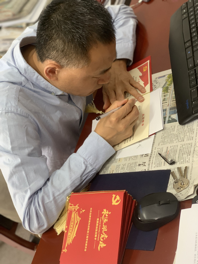 大會第二項,由大會主持人宋文文宣讀本次會議的預備黨員轉正的人員名單,預備黨員相繼上臺宣讀轉正申請書,匯報預備期中自己在思想,生活,工作等各方面的情況。隨后由黨員評議其是否具備接收為黨員的條件大會按照流程有條不紊的進行。經過投票表決,胡東成15位預備黨員均全票通過黨員決議,成為中共正式黨員。黨支部書記朱江向各位轉正的黨員給予肯定和表示祝賀并頒發黨員政治生日卡