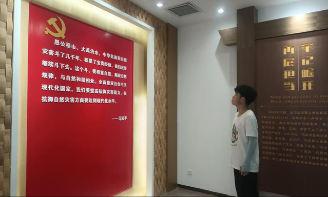 隨后調研成員參觀了王家壩抗洪紀念館,館內共設置千里淮河·滄桑蒙洼、顧全大局·舍家為國、自強不息·百折不撓、同舟共濟·風雨戰歌、科學治水·豐碑長存、牢記囑托·再展擔當、魅力阜南·濱淮花園7個展廳,記錄了不同時期蒙洼人民與洪澇災害英勇抗爭的艱辛歷程,展現了黨對蒙洼群眾的關心關懷,生動詮釋了王家壩精神的時代價值、科學內涵。調研人員體會到了愛國主義始終是把中華民族團結在一起的精神力量,激勵著一代又一代中華兒女為祖國發展繁榮而不懈奮斗。
