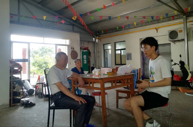 圖為調研人員正在采訪大包干發起人之一嚴金昌老人