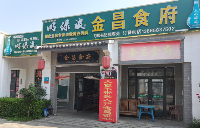 接著,調研人員來到了小崗村友誼大道旁的金昌食府。在夏日驕陽的照射下,習總書記視察這里的講話“好!農家樂,樂農家”7個字閃閃發光,隨后調研人員采訪到大包干帶頭人代表嚴金昌老人。嚴金昌老人說道:“在改革開放后的四十多年來,在中國共產黨好政策的指引下,小崗村制定了‘三步走’的發展戰略:即發展現代農業,搞科學種植和農產品加工;發展旅游業,建立大包干紀念館;招商引資辦工業,建成工業園區對農產品深加工。從此,我們小崗村人民吃不愁、穿不愁、家家戶戶小洋樓,而且戶戶能進城,家家都有私家車。”