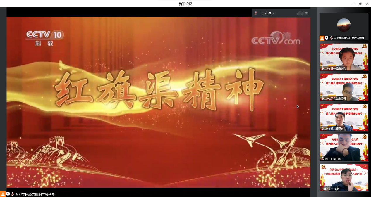 2022115上午1000,先進(jìn)制造工程學(xué)院第六期入黨積極分子培訓(xùn)班在騰訊會(huì)議平臺(tái)線上舉行了第一次電教片學(xué)習(xí)活動(dòng),74名學(xué)員準(zhǔn)時(shí)簽到參加。本次電教片為《百家講壇》欄目中國(guó)精神特別節(jié)目中的延安精神紅旗渠精神,該片通過(guò)講述革命圣地延安與建造紅旗渠的故事,指引新時(shí)代青年人應(yīng)正確看待、繼承和弘揚(yáng)誕生于艱苦歲月中的延安精神與紅旗渠精神。