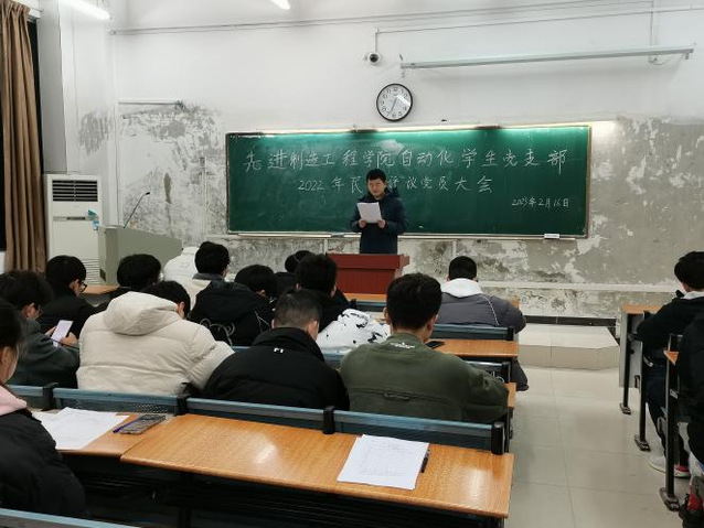 2023年2月16日晚上,合肥學院先進制造工程學院自動化學生黨支部于36棟101教室召開了2022年度民主評議黨員組織生活會。本次會議由自動化學生黨支部書記梅志強同志主持,自動化全體黨員參加了會議。