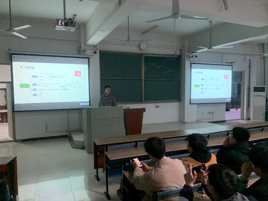 接著,何凱旋學長以機械電子工程專業為例,介紹了專業的學習路線,教會學弟學妹們如何將專業課程在腦海中形成一套完整的體系。建議學弟學妹們跳出課本,學習先進的科學技術,并將課本的知識聯系實際。