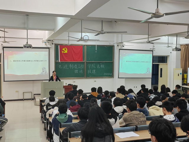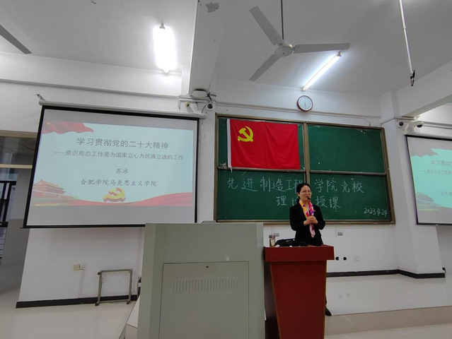 為加強大學生對意識形態的認識,2023年4月24日18點30分,先進制造工程學院分黨校邀請了合肥學院馬克思主義學院副院長蘇冰教授為第七期入黨積極分子培訓班講授“學習貫徹黨的二十大精神——意識形態工作是為國家立心為民族立魂的工作”專題黨課。本次黨課由機制學生黨支部書記威力旺老師主持,先進制造工程學院分黨校第七期入黨積極分子班153名學員和學生黨支部23名黨員參加了本次理論授課。